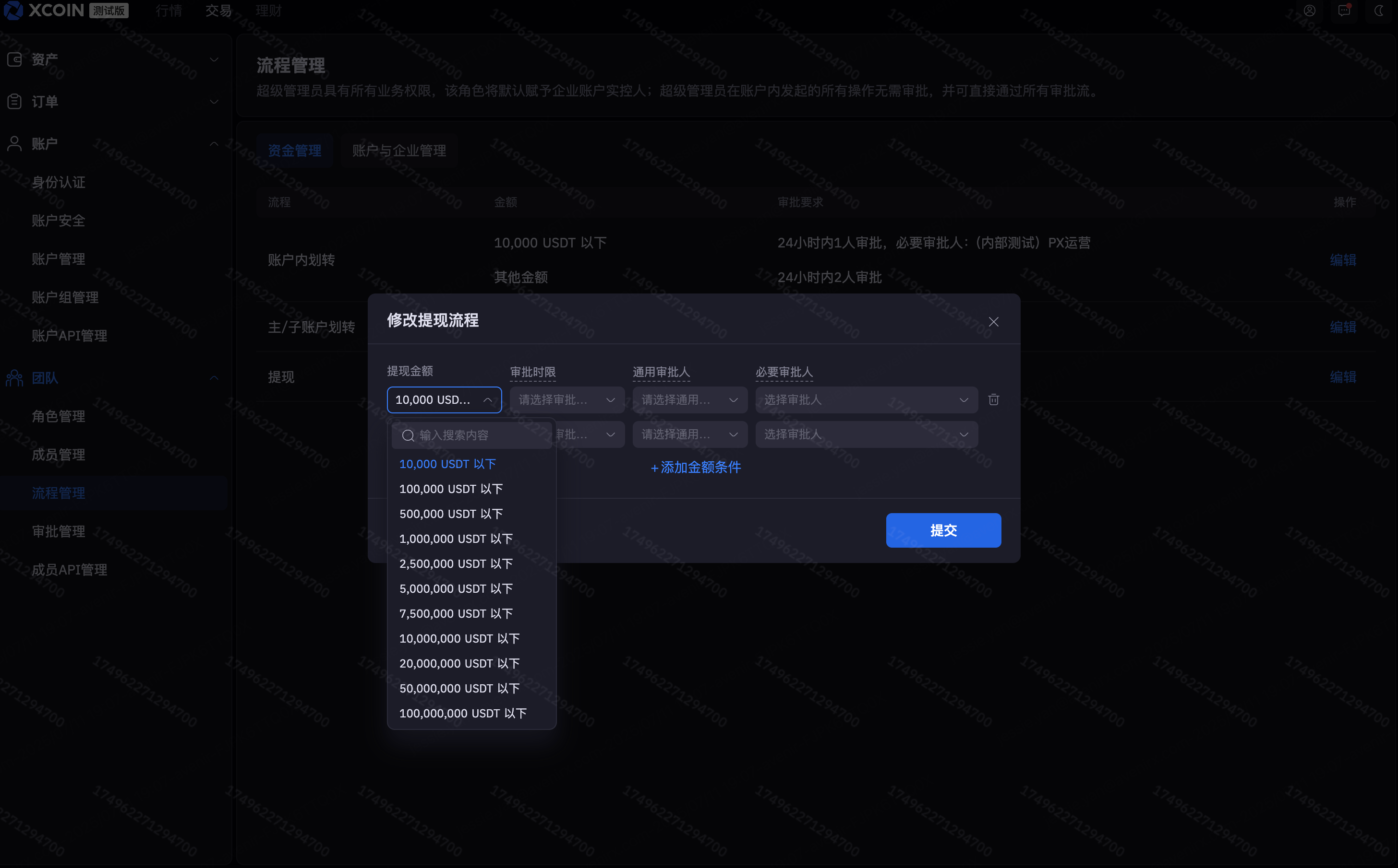 - In the process management section, you can set processes that require approval, such as withdrawals. Click Edit.