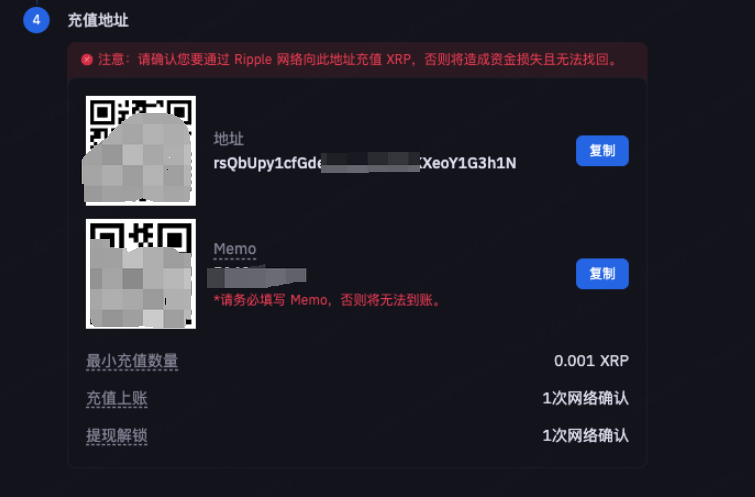 - Memo information for tokens that require tags (such as XRP) must be entered in a separate field on the external platform.