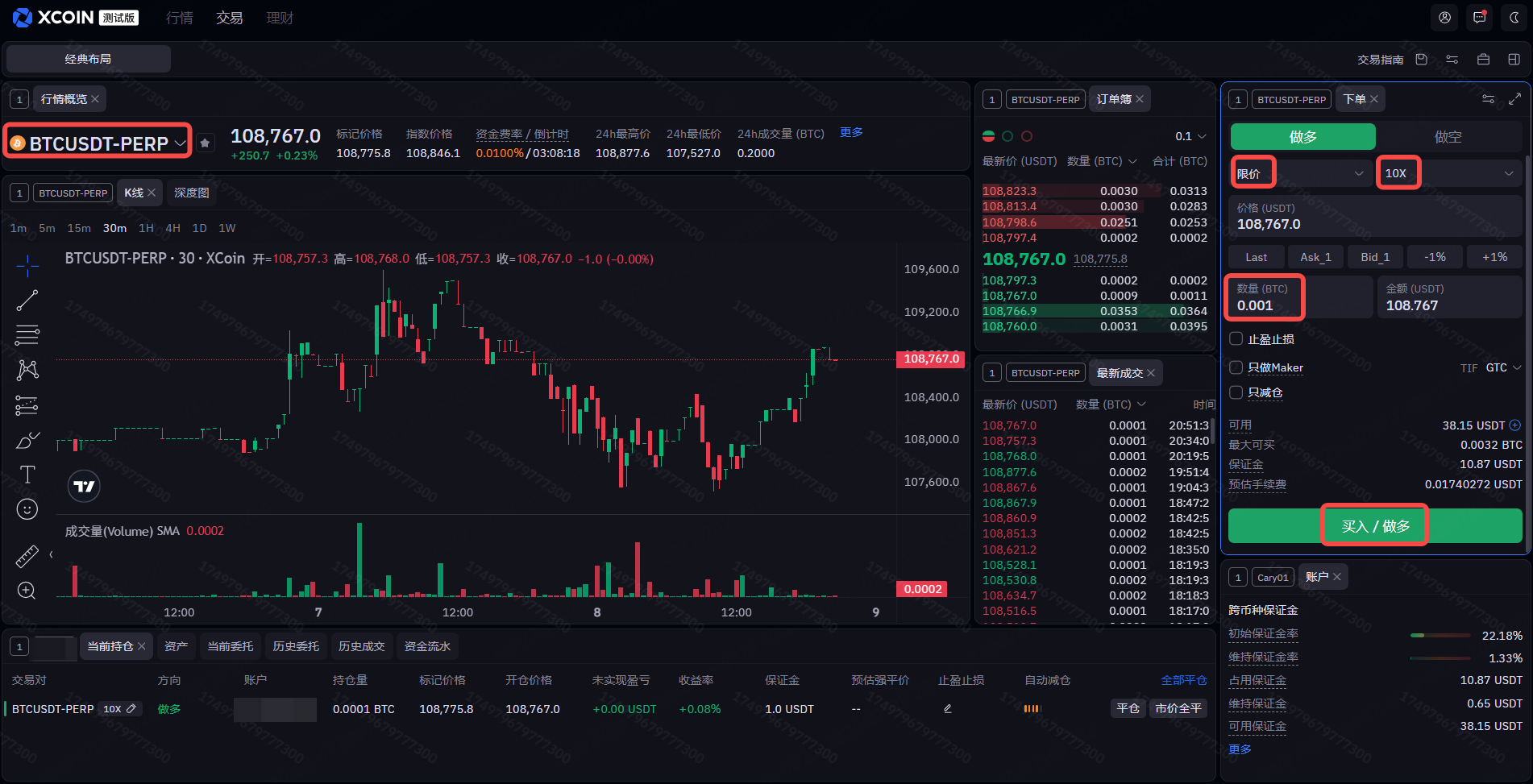 Using the BTCUSDT perpetual contract as an example: Click [Trade] in the top left corner of the official website to enter the trading page; select [BTCUSDT - PERP].