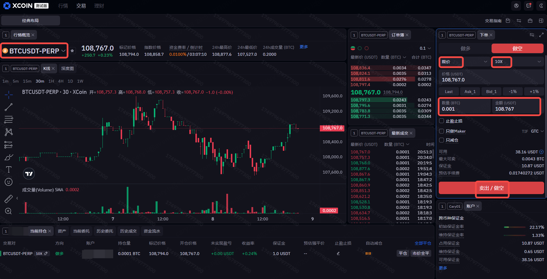 Using the BTCUSDT perpetual contract as an example: Click [Trade] in the top left corner of the official website to enter the trading page; select [BTCUSDT - PERP]. Select [Leverage], [Limit Price]/[Market Price]/[Plan Order] - enter [Price] and [Quantity] - click [Sell] - [Confirm].