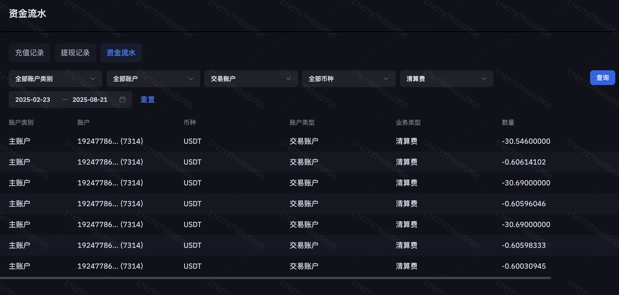 Liquidation Fee | Liquidation fee for contracts | Includes liquidation fees incurred from market liquidation and platform takeover. |