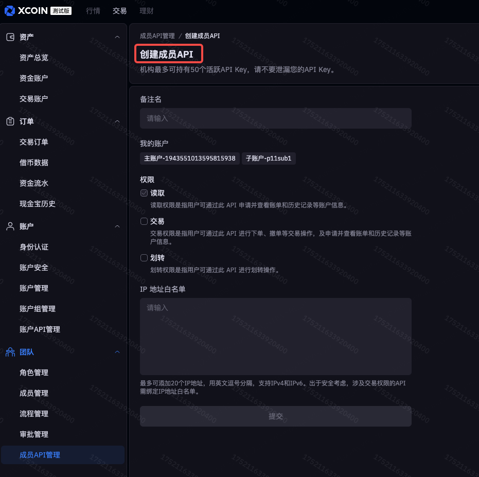 - 步骤:登录官网→ 选择账户/成员 → 设置权限(读取/交易/划转)→ 绑定 IP(交易权限必填)→ 生成 API Key 和密钥。