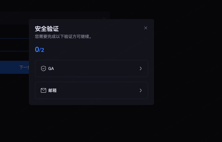 - 根据页面提示,完成相应的安全验证(如谷歌验证器、邮箱验证码等)。