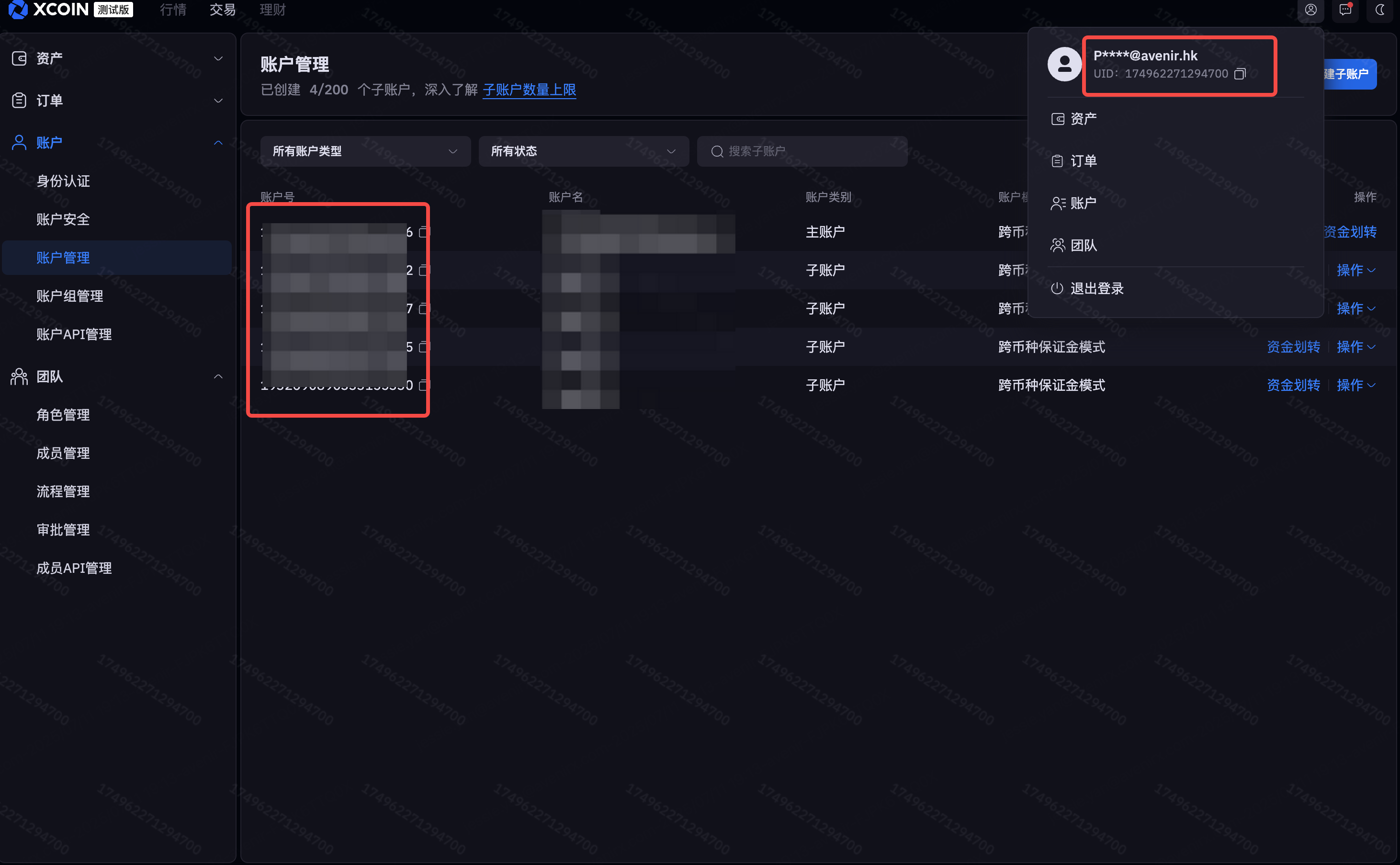 当您申请注册XCoin账户,系统会自动生成主账户账户号码和此账户的超级管理员,默认的登录是超级管理员,超级管理员可以通过账户管理生成更多的账户,亦可以通过团队管理邀请更多的团队成员,并将团队成员/uid和账户/pid匹配起来。