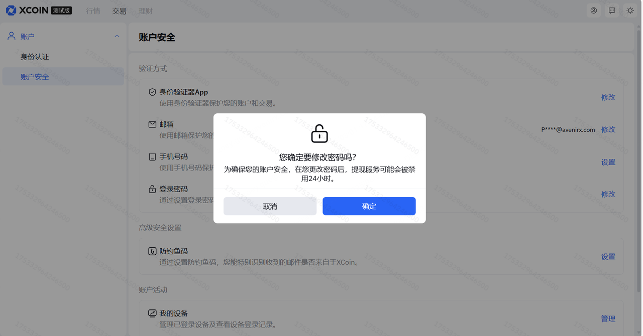 注意:为了保护您的帐户安全,重置密码后,24小时内无法使用提现功能。