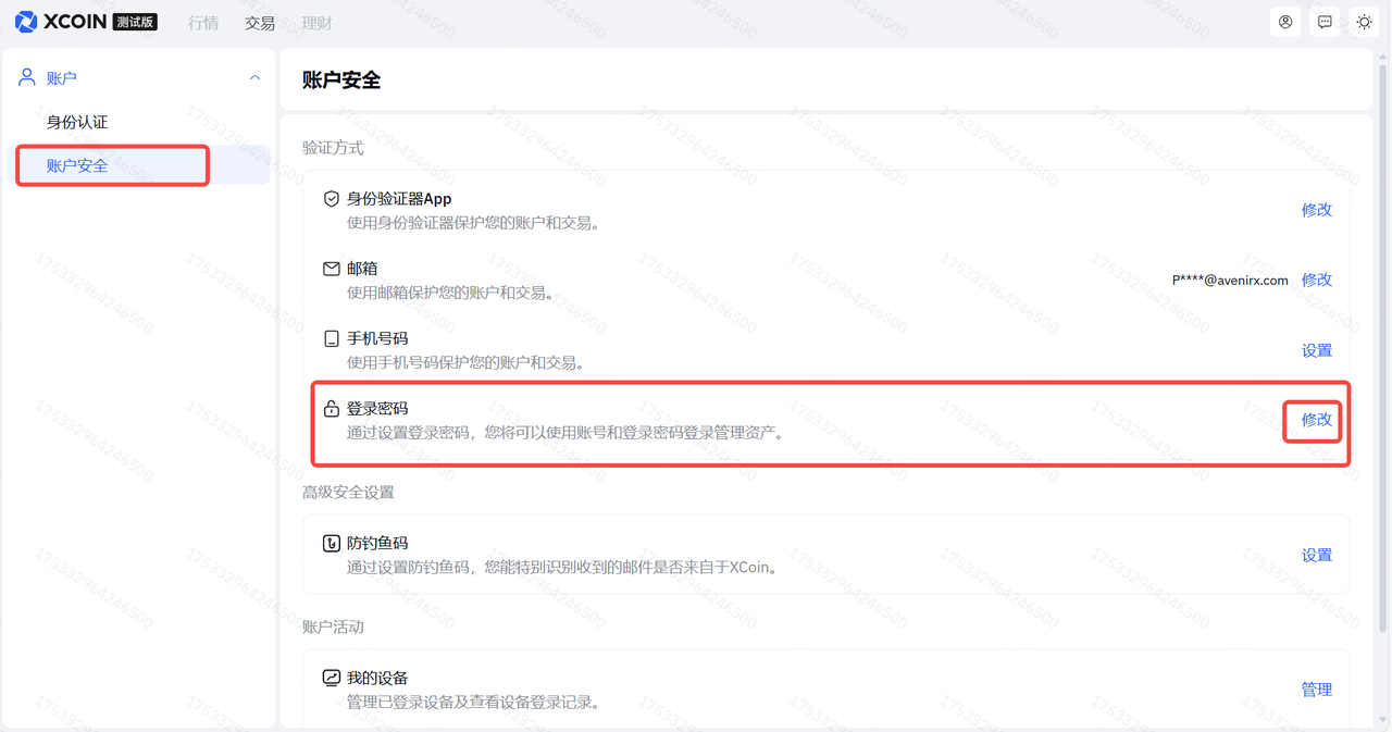点击【账户安全】和【登录密码】栏位上的【修改】按钮。
