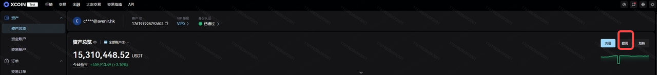 登录后进入“资产”页面,点击“提现”按钮。